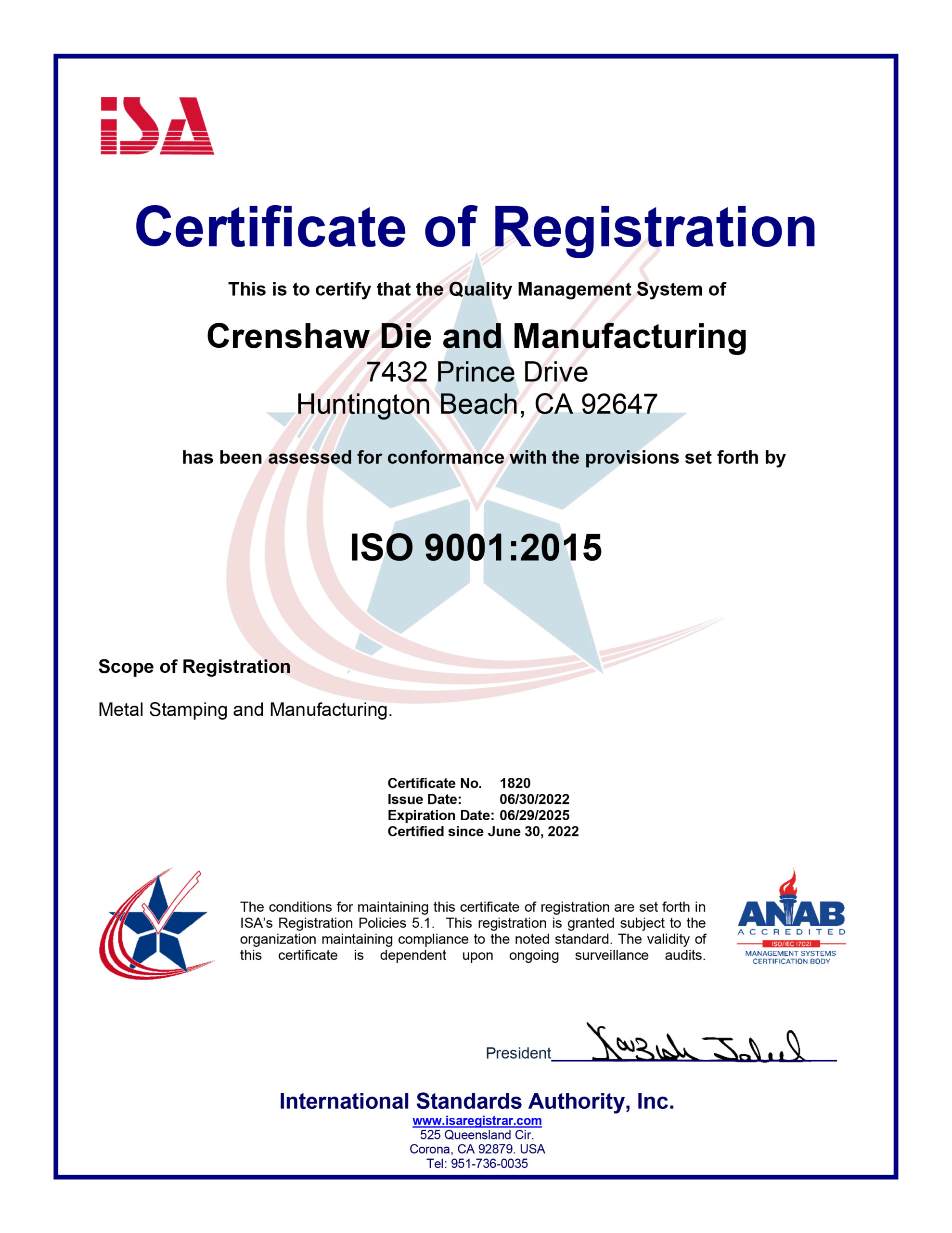 Many Industrial customers have relied upon Crenshaw Die and Manufacturing to deliver quality products to ensure their product’s reliability.